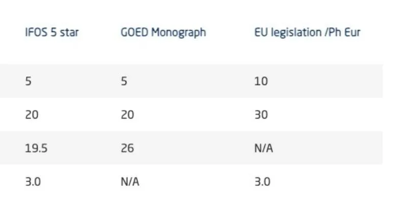 Nuestro producto ha obtenido el certificado IFOS™, lo cual garantiza que se trata del mejor Omega 3 para tu salud. Además, ha pasado rigurosos análisis para asegurar que cumple con las concentraciones de EPA y DHA indicadas en la etiqueta. Asimismo, se ha comprobado que no contiene niveles de contaminantes, como metales pesados y tóxicos, que superen los límites seguros establecidos por autoridades mundiales en salud como la EFSA, el CRN y GOED Omega 3.